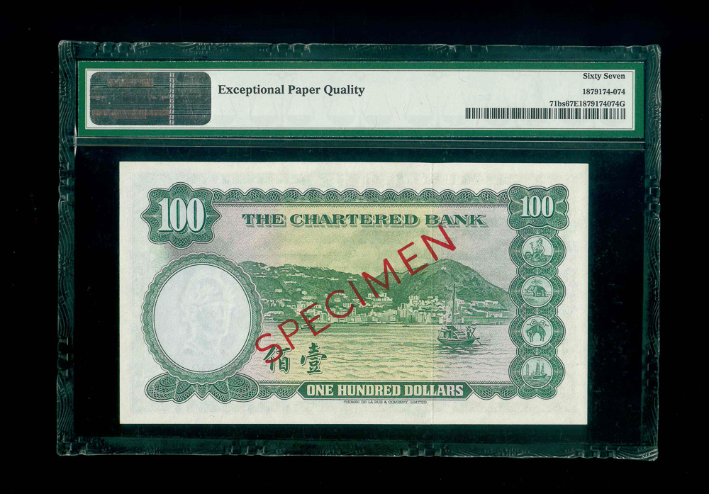 1961-70ND. 香港渣打銀行$100 PMG 67 EPQ 編號: Y/M 0000000, 樣鈔, 米拿簽名