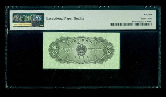 1953 中國人民銀行伍分 PMG 66 EPQ UNC 編號:IXI(頂級雪白)