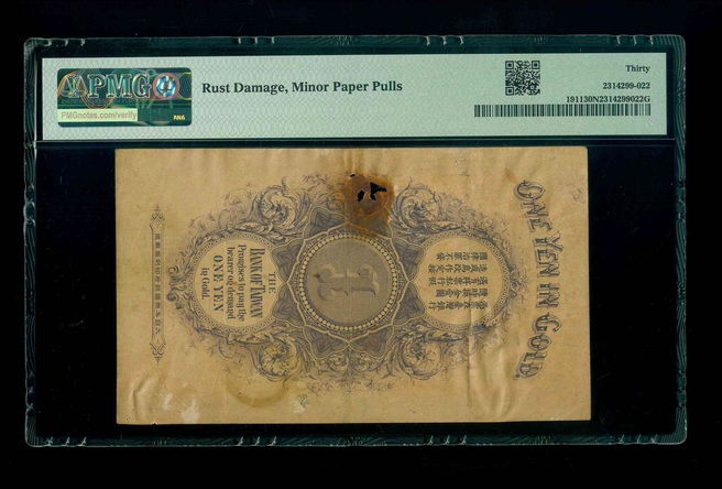 1904ND 台灣銀行金壹圓 PMG Net 編號:450640(Rust Damage/Minor Paper Pulls)