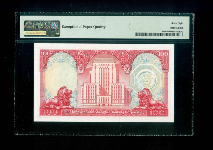 1983 香港上海匯豐銀行$100 PMG 68 EPQ 編號: YV804808(高分,頂級雪白)
