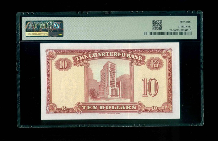 1962-70ND 香港渣打銀行 $10 PMG 58 編號:U/G 9991111(獅子號)