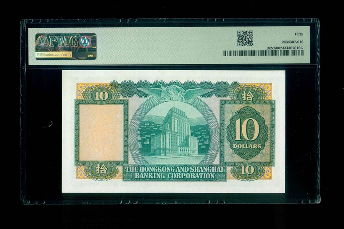 1964 香港上海滙豐銀行 $10 PMG 50 編號:036963 JP