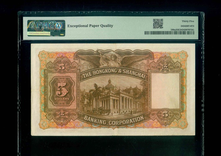 1956 香港上海滙豐銀行 $5 PMG 35 EPQ 編號:E/H 669266