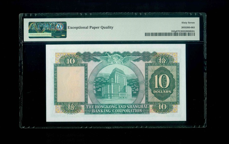 1970 香港上海滙豐銀行 $10 PMG 67 EPQ 編號:606283 PA(頂級雪白)
