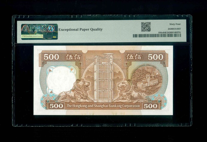 1990 香港上海滙豐銀行 $500 PMG 64 EPQ 編號:AZ041950(頂級雪白)