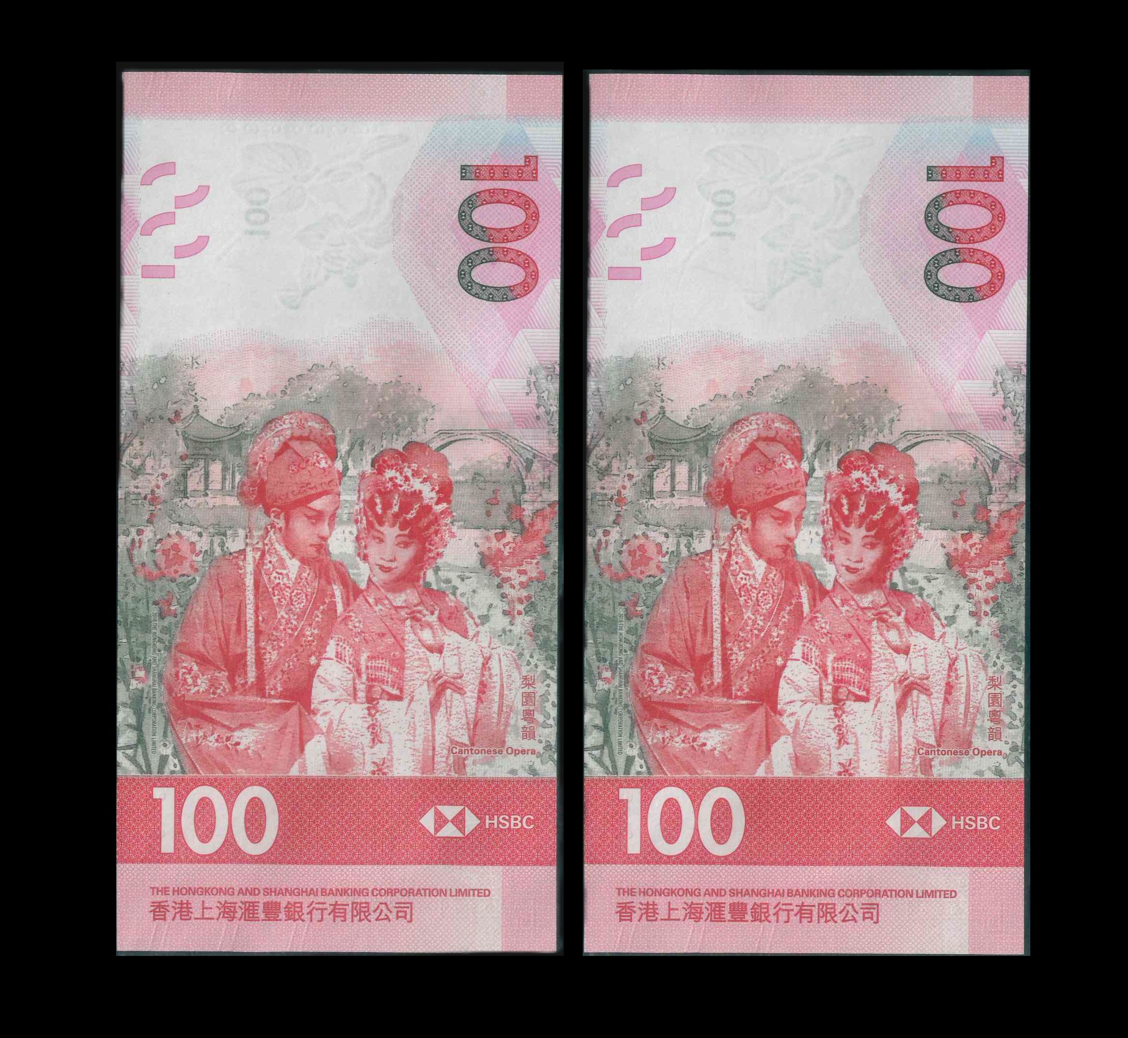 2022 香港上海匯豐銀行$100 UNC 編號: JR969969…(兩標同號,共2張)