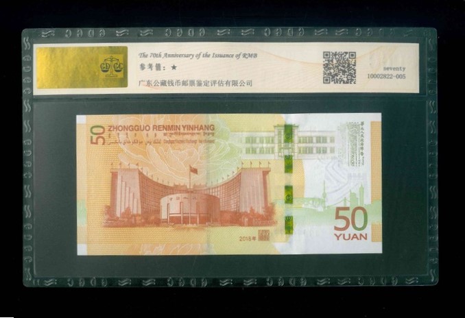 2018 中國人民銀行人民幣發行70周年紀念 $50 GDGC 70 EPQ 編號:J111001760(頂級雪白)