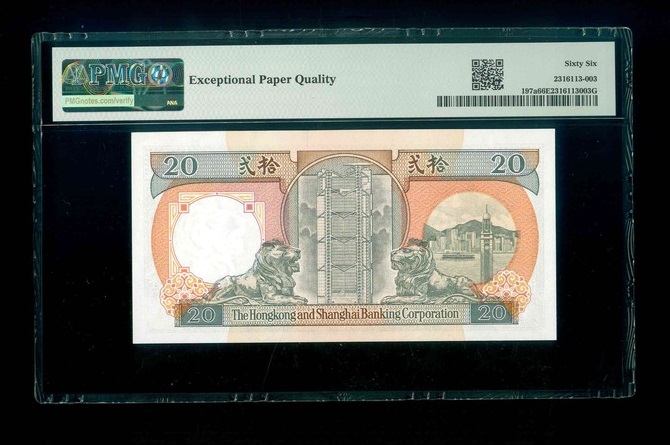 1990 香港上海滙豐銀行 $20 PMG 66 EPQ 編號:BP116728(頂級雪白)