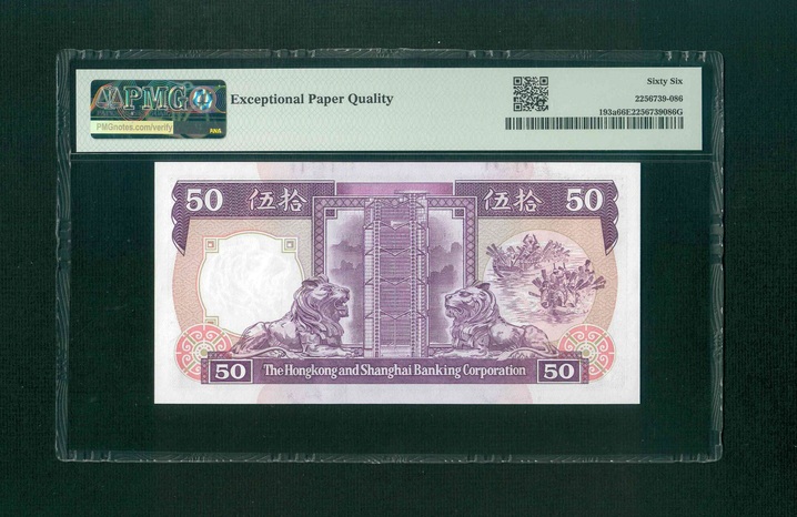 1987 香港上海滙豐銀行 $50 PMG 66 EPQ 編號:AJ406991(頂級雪白)