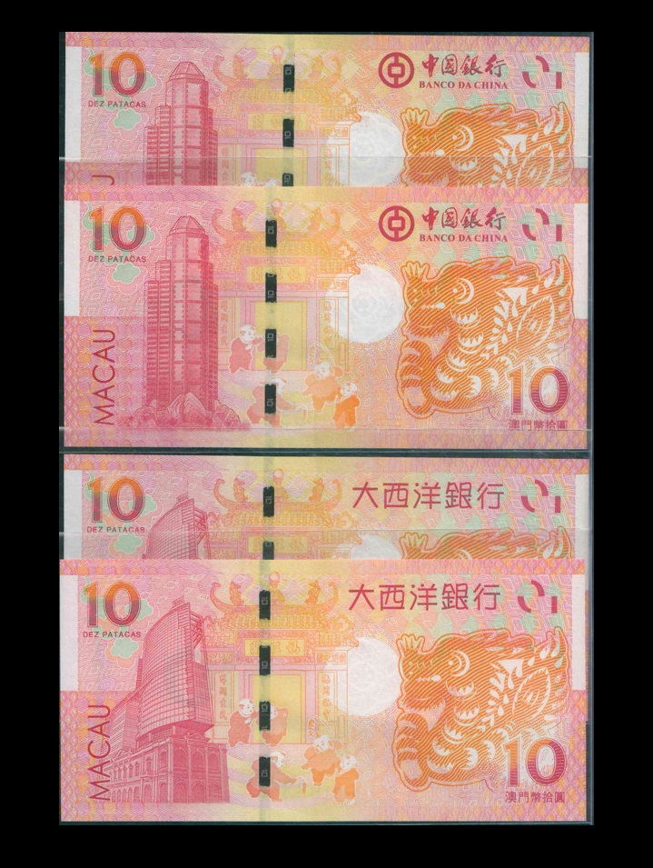 2012 澳門中國/大西洋銀行$10 UNC 編號: 18661932-33(2組同號,共4張)