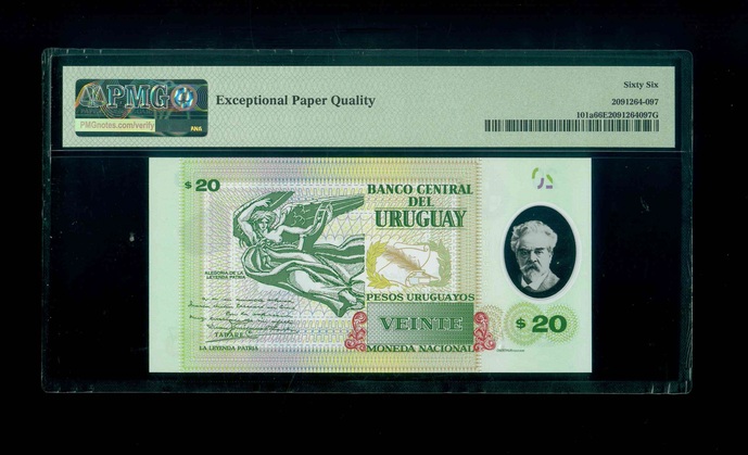 2020 Uruguay(烏拉圭) 20 Pesos PMG 66 EPQ 編號:19485077(頂級雪白)