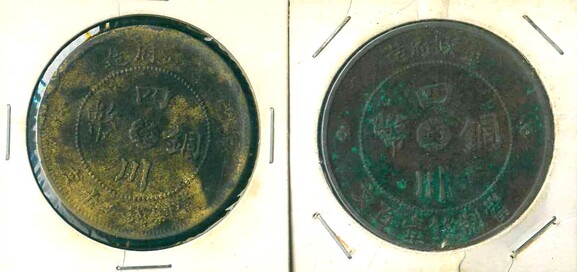 1913 中華民國3年軍政府造四川銅幣50文,百文"漢"字 VF 編號:NIL(共2枚)