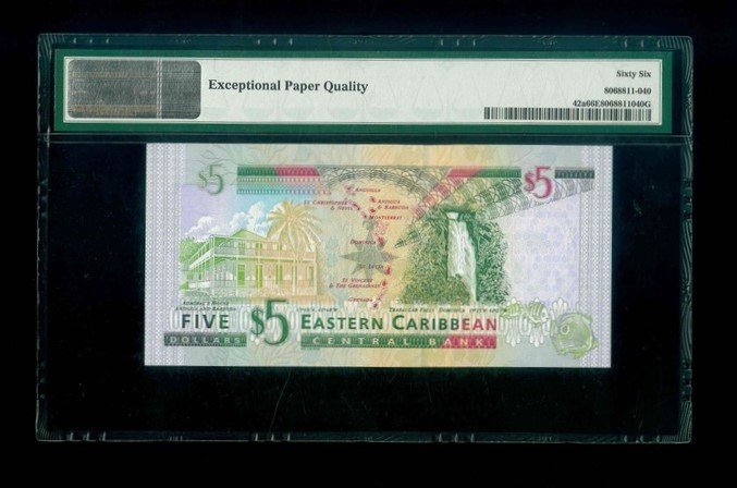 2003ND East Caribbean States (Antigua) 東加勒比安提瓜 $5 PMG 66 EPQ 編號:K824265A(頂級雪白)