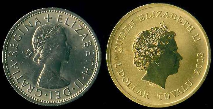 英國伊利莎伯二世 2 Shillings/ 澳洲 $1 (綠貓鳥彩色精鑄)紀念幣