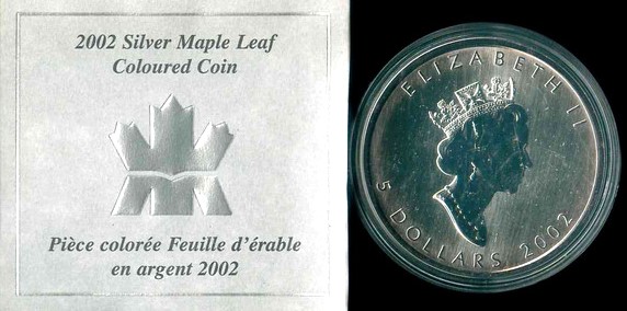 2002 加拿大(彩色楓葉)銀幣 $5 (Fine Silver 1oz) UNC 編號:NIL(証書連盒)