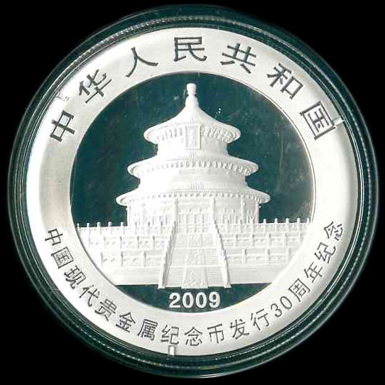 2009 中國現代貴金屬30周年熊貓銀幣 $10 (1oz Ag.999) UNC 編號:NIL