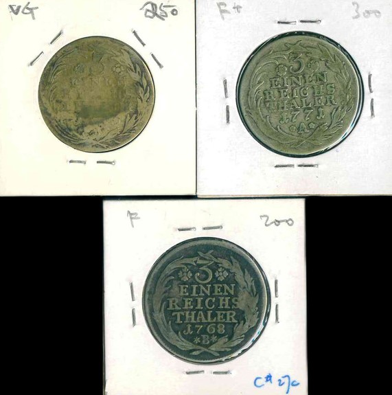 1763B/71A 德國普魯士 1/3 Thaler VG/F 編號: NIL(共3枚)