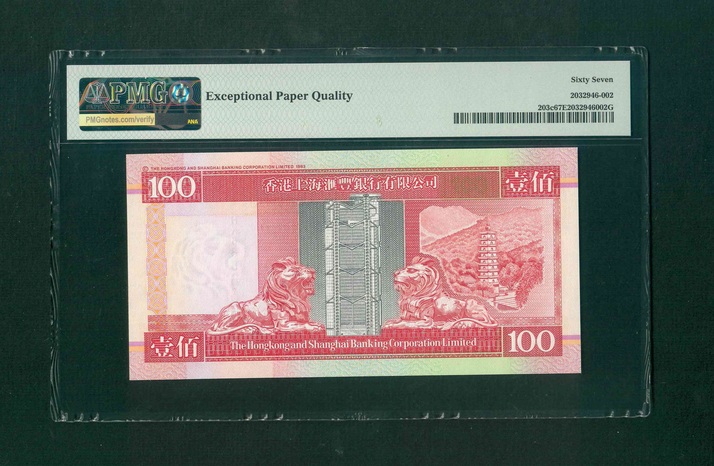 2000 香港上海匯豐銀行$100 PMG 67 EPQ 編號: HK686888(豹子號,頂級雪白)
