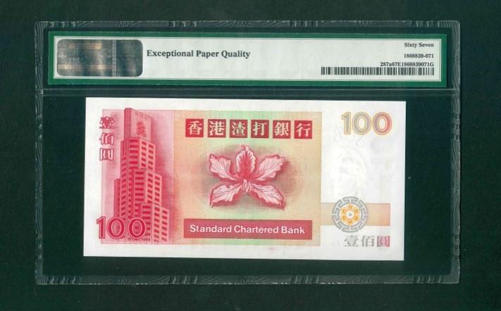 1993 香港渣打銀行$100 PMG 67 EPQ 編號: B009074(頂級雪白)