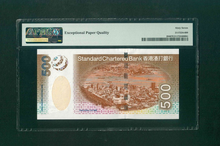 2003 香港渣打銀行$500 PMG 67 EPQ 編號: AA664899(頭版系列,頂級雪白)
