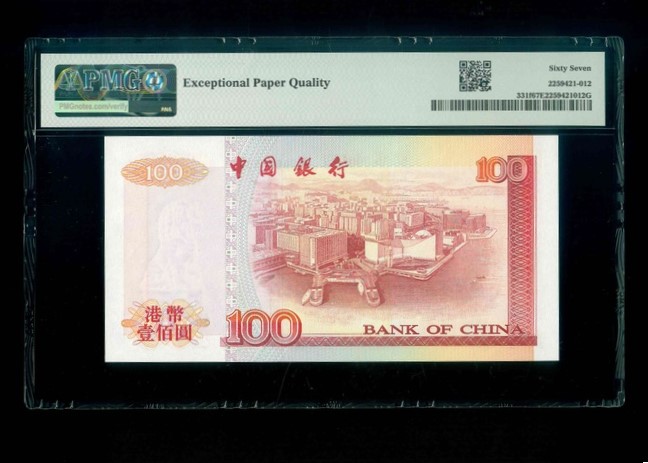 2000 中國銀行 $100 PMG 67 EPQ 編號:BE338666(豹子號,頂級雪白)