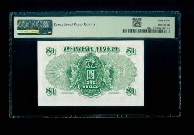 1959 香港政府 $1 PMG 67 EPQ 編號:6M 642987