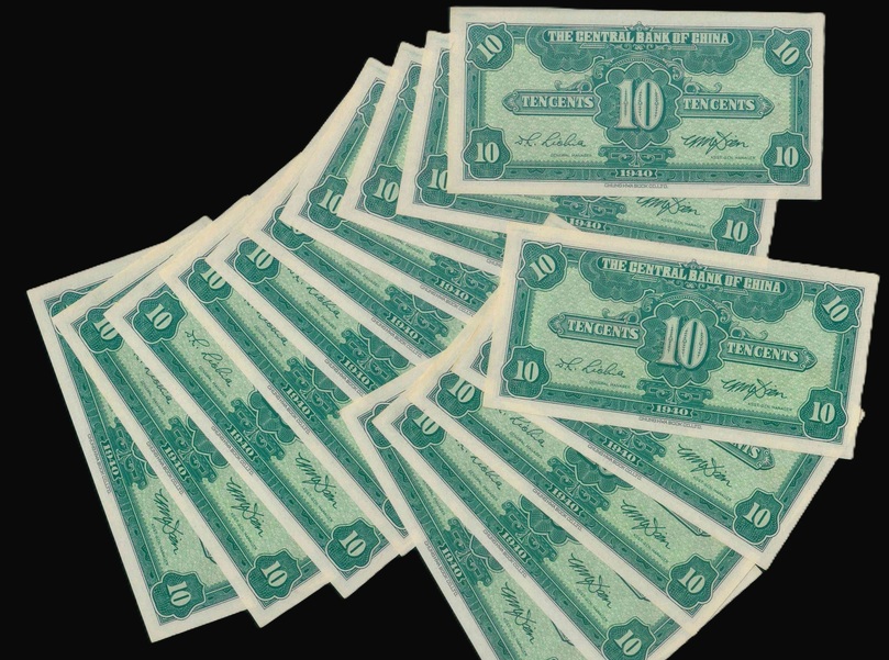 1940 中央銀行 壹角 UNC 編號:Q575414N…(共15張,含連號)