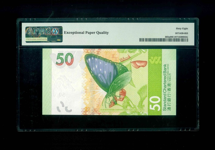 2018 香港渣打銀行 $50 PMG 68 EPQ 編號:AK266888(豹子號,頂級雪白)