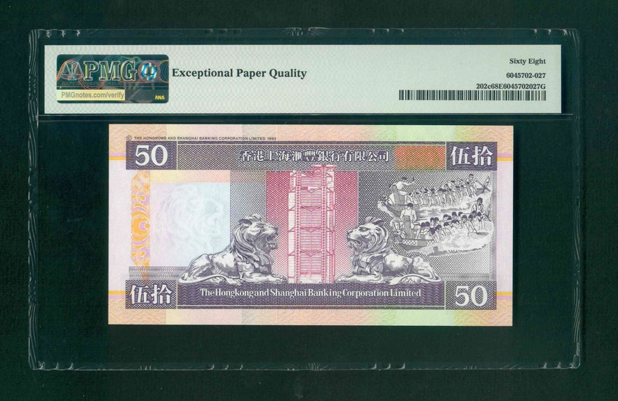 1997 香港上海匯豐銀行$50 PMG 68 EPQ 編號: AA355238(高分頭版,頂級雪白)
