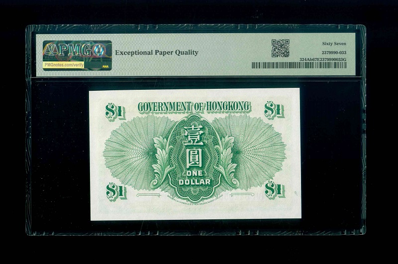 1959 香港政府 $1 PMG 67 EPQ 編號:6M 642958