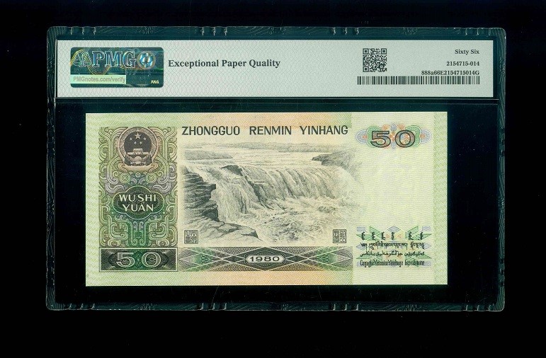 1980 中國人民銀行 $50 PMG 66 EPQ 編號:EQ00960154(頂級雪白)