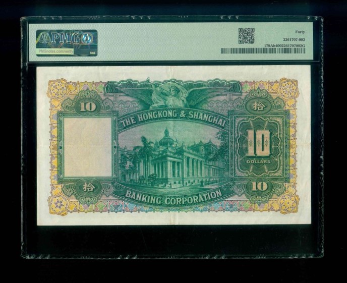 1955 香港上海滙豐銀行 $10 PMG 40 編號:F/J 841261