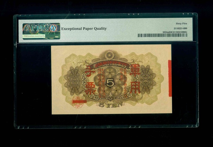 1938ND 日本銀行兌換劵軍用手票 $5 PMG 65 EPQ 編號:NIL(頂級雪白)