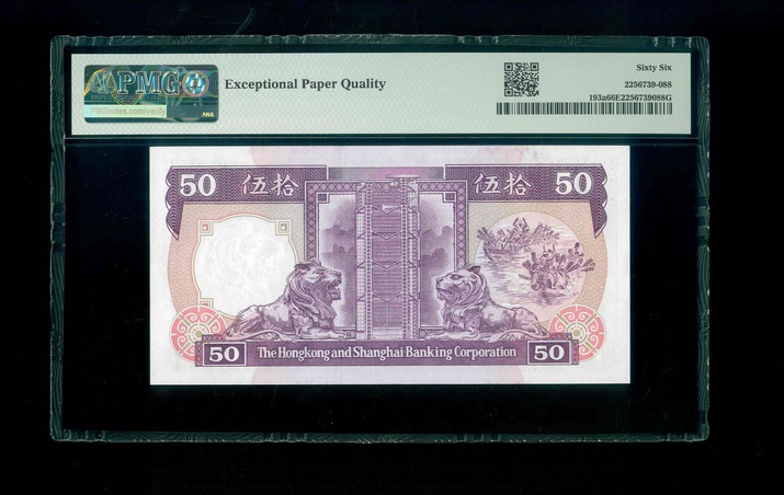 1987 香港上海滙豐銀行 $50 PMG 66 EPQ 編號:AJ406993(頂級雪白)