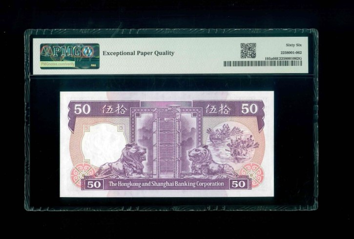1985 香港上海滙豐銀行 $50 PMG 66 EPQ 編號:AB391699(頂級雪白)