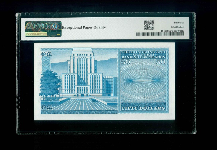1982 香港上海匯豐銀行$50 PMG 66 EPQ 編號: A/5 516101(頂級雪白)