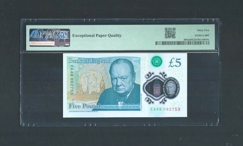 2023 英國 5 Pounds PMG 65 EPQ 編號: CA49 092753(頂級雪白)