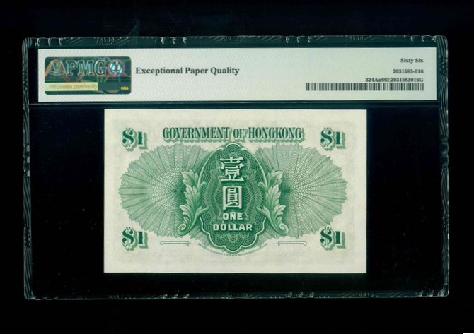 1952 香港政府$1 PMG 66 EPQ 編號: S/6 117042(頂級雪白)