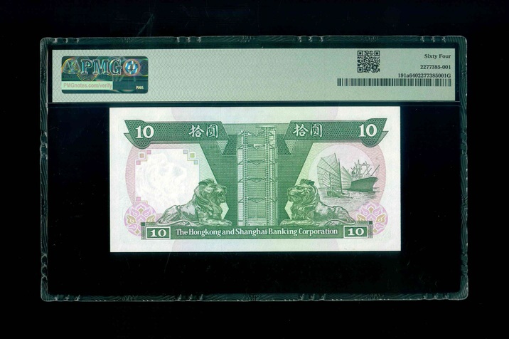 1985 香港上海匯豐銀行$10 PMG 64 編號: CP883388(雷達三對子)