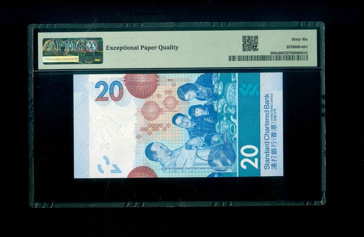 2018 香港渣打銀行$20 PMG 66 EPQ 編號: AS996699(雷達號,頂級雪白)