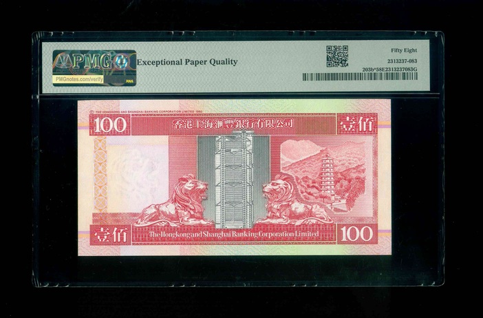 1997 香港上海滙豐銀行 $100 PMG 58 EPQ 編號:ZZ077649(補版系列)