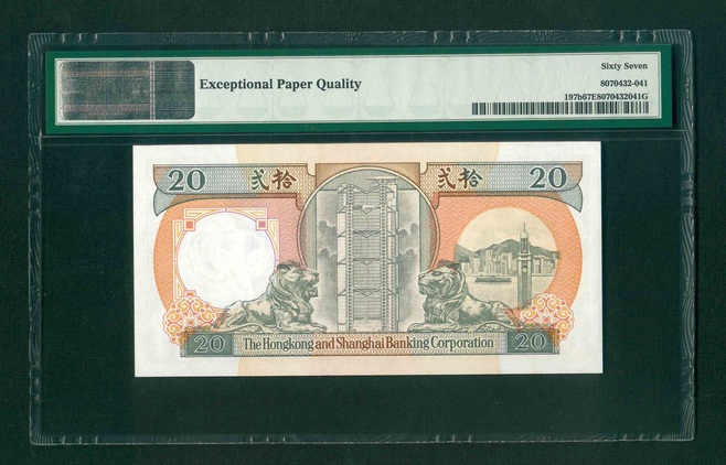 1991 香港上海匯豐銀行$20 PMG 67 EPQ 編號: CA337915