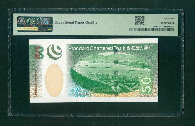 2003 香港渣打銀行$50 PMG 67 EPQ 編號: AA630831(頭版系列,頂級雪白)