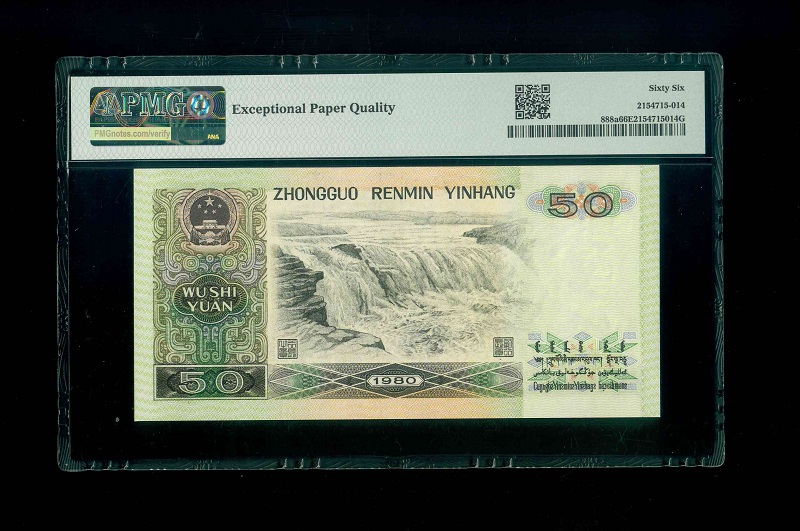 1980 中國人民銀行$50 PMG 66 EPQ 編號: EW15387764(頂級雪白)