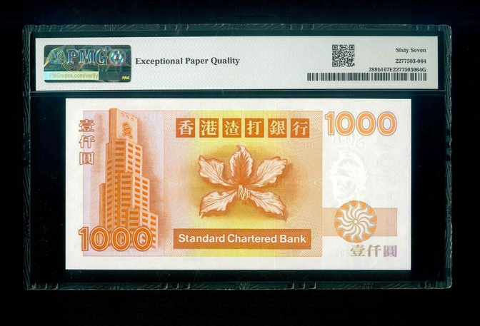 1997 香港渣打銀行$1000 PMG 67 EPQ 編號: A273803(頭版系列,頂級雪白)