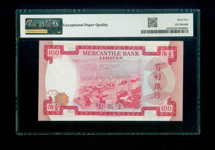 1974 香港有利銀行$100 PMG 65 EPQ 編號: B397174(頂級雪白)