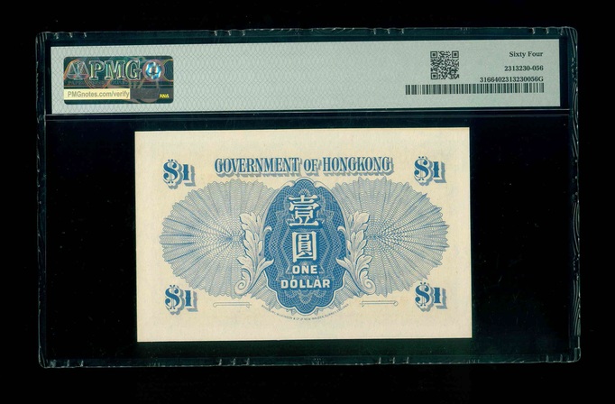 1940-41ND. 香港政府$1 PMG 64 編號: G/1 609777(豹子號)
