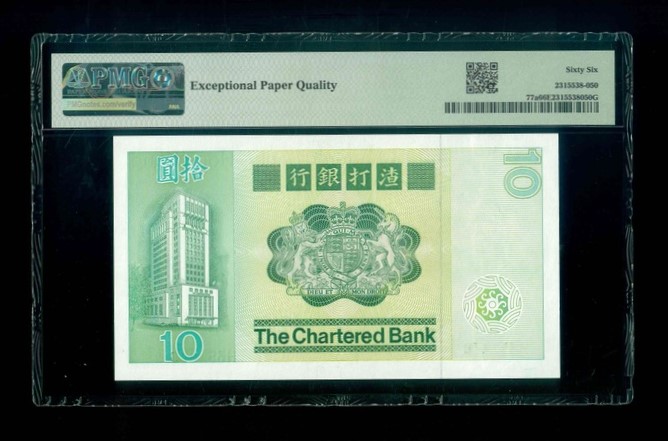 1980 香港渣打銀行 $10 PMG 66 EPQ 編號:H351479(頂級雪白)