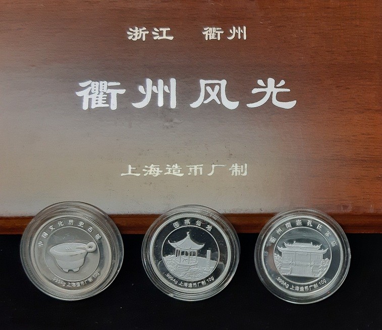 ND 上海造衢州風光套裝銀章(水亭門城樓/烂柯山/孔子像-10g .999 Ag) 品相如圖 編號:NIL(一套3枚,証書連盒)