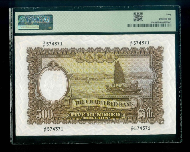 1977 香港渣打銀行 $500 PMG 40 編號:Z/P 574371